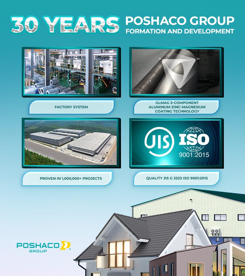 Poshaco Group was established and has been growing since 1996. Today, Poshaco Group takes pride in being a leading specialist in the production of color-coated steel coils with an advanced aluminum-zinc-magnesium alloy coating.